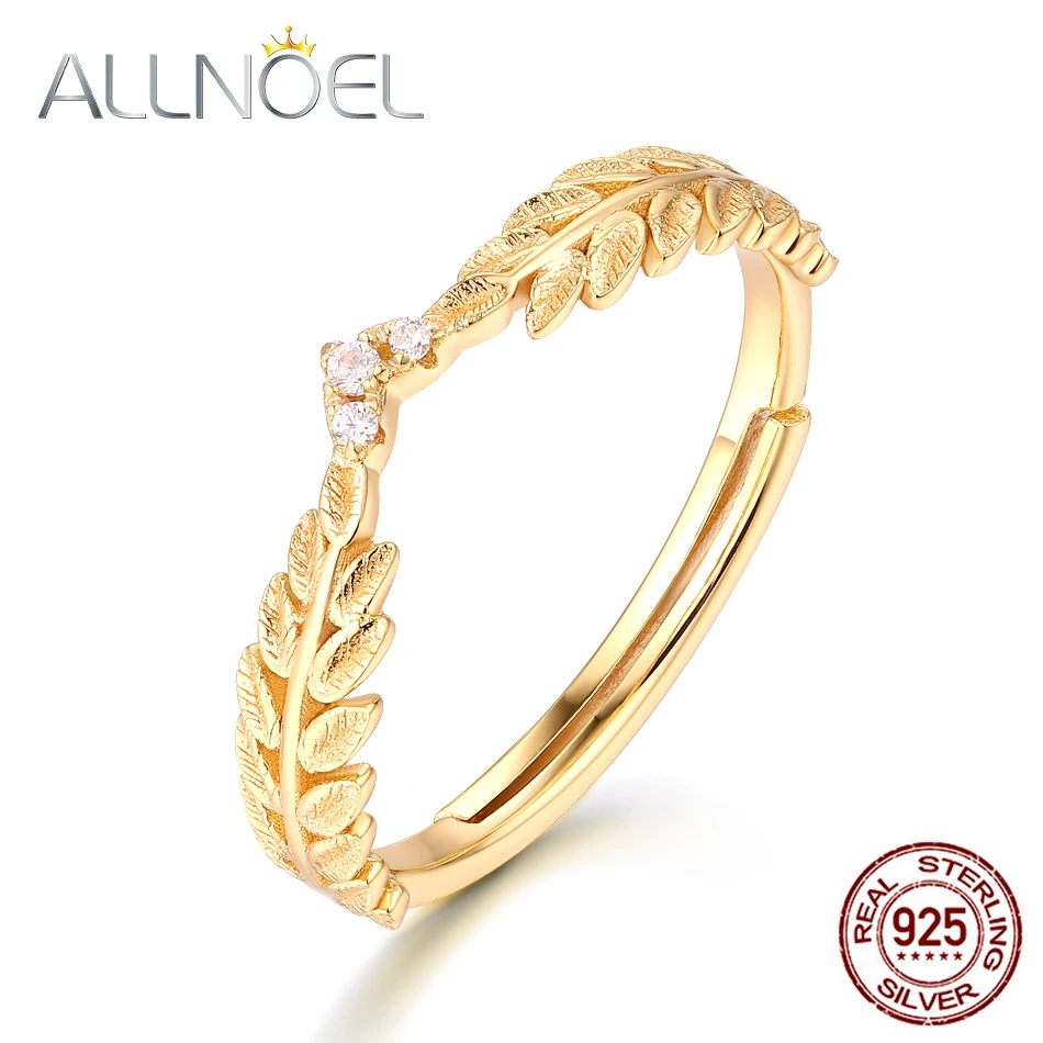 ALLNOEL реального 925 пробы Серебряное кольцо из циркона для Для женщин оливковых листьев украшение с камнем для годовщины помолвки индивидуаль...