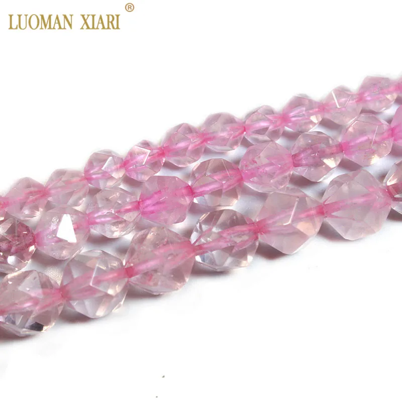 Натуральное граненый круглый розовый кварц Натуральный камень бисер розового цвета с украшением в виде кристаллов для самостоятельного из...