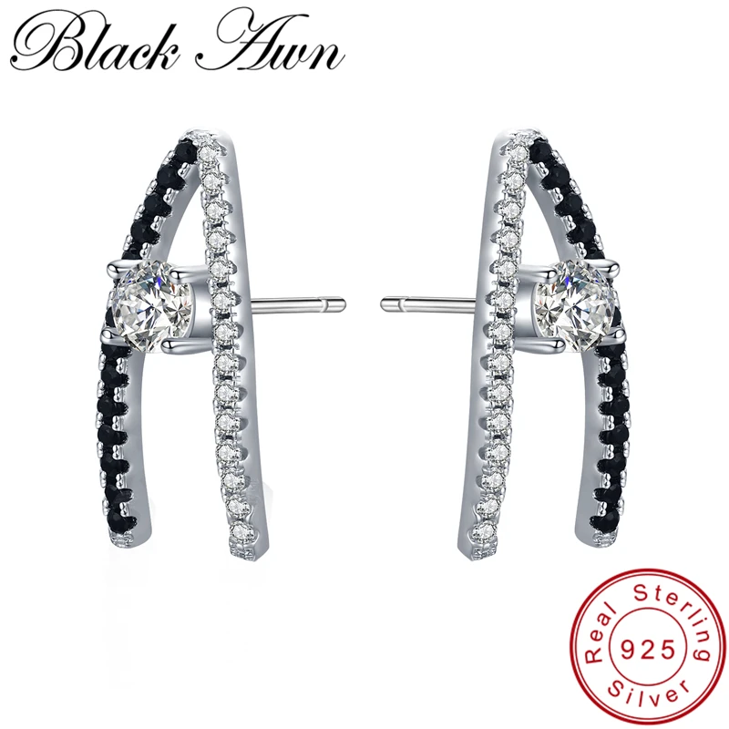 [BLACK AWN] серьги из настоящего серебра 925 пробы, ювелирные изделия, свадебные серьги-гвоздики для женщин, сережки из черной шпинели, женские Украшения T010
