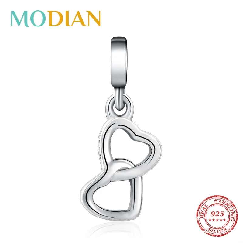 Modian, двойные сердечки, модные крошечные амулеты, настоящее 925 пробы, серебряные амулеты, подходят мне, браслет и сделай сам, ювелирные изделия для женщин, День святого Валентина