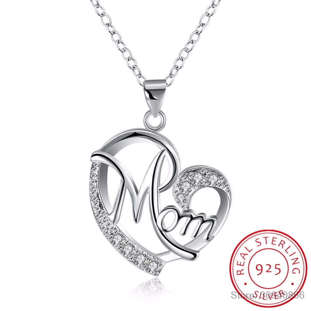 LEKANI/модное серебряное ожерелье с подвеской в виде сердца с надписью «Mom 925 пробы» и цирконием AAA, подарок на день матери для мамы
