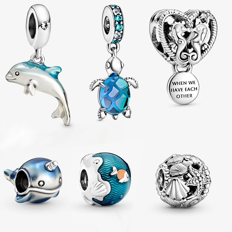 Лето 2020, новинка, Стерлинговое Серебро 925 пробы, мерцающие волны океана, подвески в виде рыбы, бусины, подходят к оригинальным браслетам Pandora, Женские Ювелирные изделия DIY