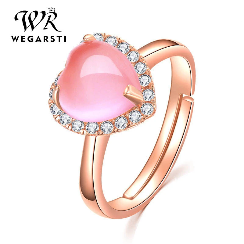 WEGARSTI сердце драгоценный камень создан розовый кварц регулируемое кольцо 925 пробы серебряные ювелирные изделия для женщин Свадебные
