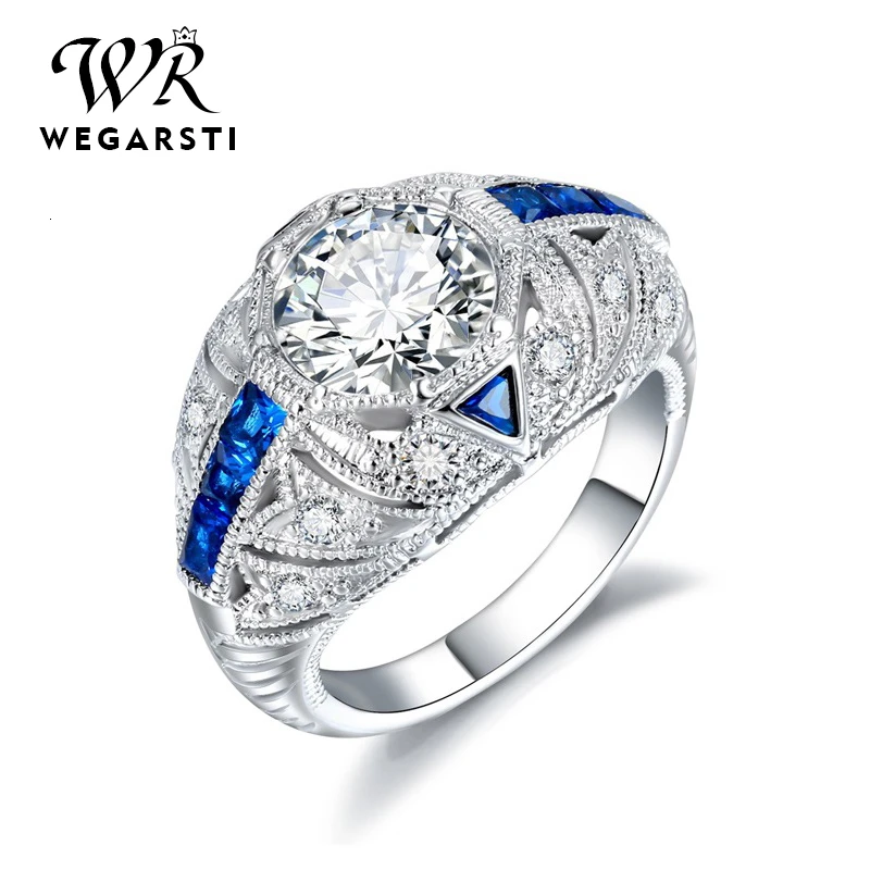 WEGARASTI, серебро 925, Ювелирное кольцо, сапфир, модные, вечерние, Круглые, классические, 925 пробы, серебряные кольца, ювелирное изделие для женщин,...