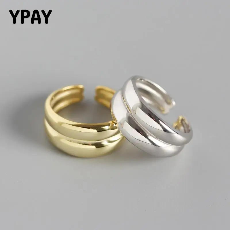 OLOEY 100% Серебро 925 пробы открытым кольца минималистский INS геометрический двойной слои 8 мм широкий глазурованные простой ювелирные украшени...
