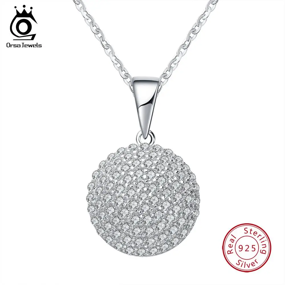 ORSA JEWELS Высокое качество Модный Круглый 925 пробы серебряные ювелирные изделия кулон AAA CZ ожерелье с 45 см цепь SN60