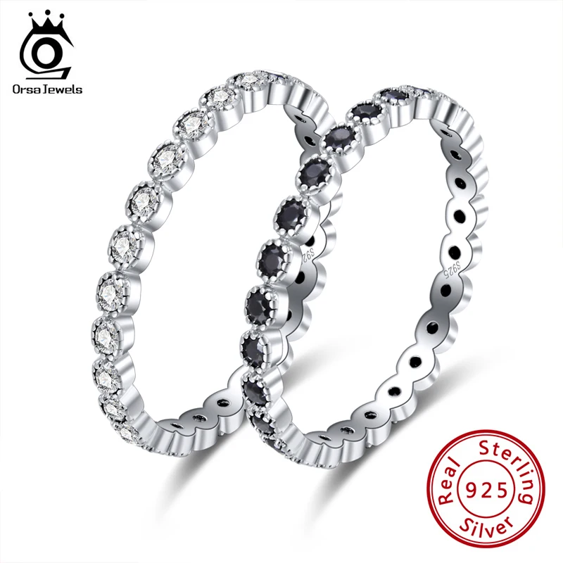 ORSA JEWELS, Настоящее серебро 925 пробы, складные кольца для женщин, полный круг, AAAA, циркониевое кольцо, кольца на палец, свадебные, обручальные ювелирные изделия SR145