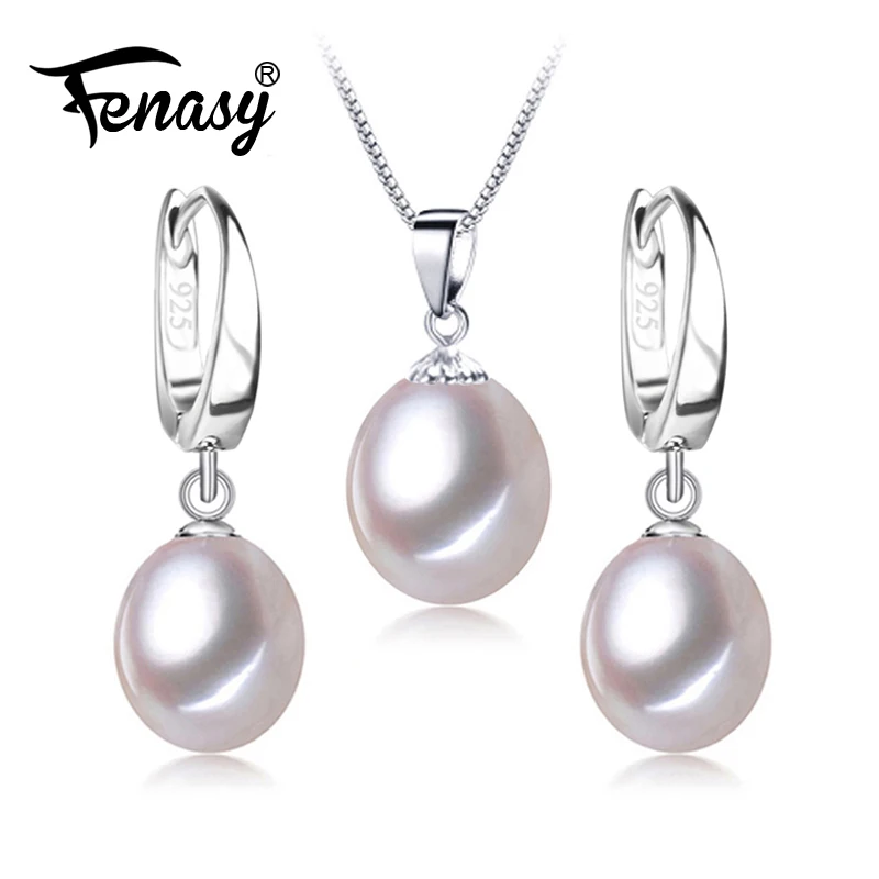 FENASY брендовые Ювелирные наборы из стерлингового серебра 925 пробы с натуральным жемчугом, серьги-подвески на заказ, Классическая цепочка, ожерелье для женщин