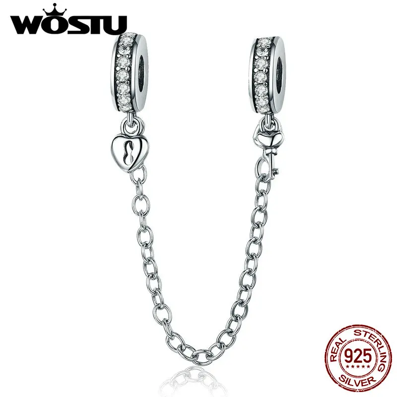Браслет CQC606, 100% стерлингового серебра 925 пробы с ключом к сердцу, силиконовая безопасная цепь с шармом, подходит для Wostu, оригинальные шарики, ювелирных изделий