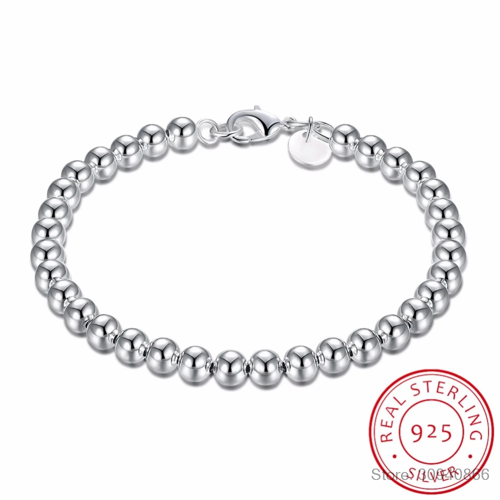 Браслет из стерлингового серебра 925 пробы счастливый круглый молитва 6 мм бусины браслеты и браслеты для мужчин и женщин ювелирные изделия ...
