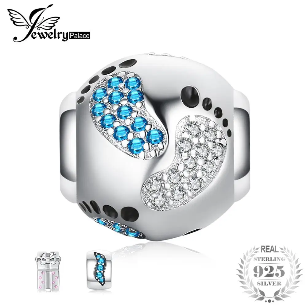 JewelryPalace счастливое детство кубического циркония созданный синий сапфир след 925 пробы Серебряный Шарм бисер 2018 Новая горячая распродажа