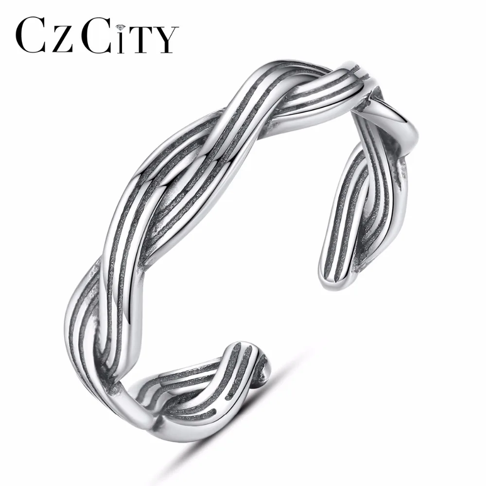 CZCITY Аутентичные 925 пробы серебро стекируемые кольцо полосатая Форма кольцо на палец со стрелкой Для женщин Винтаж стерлингов Серебряные юв...