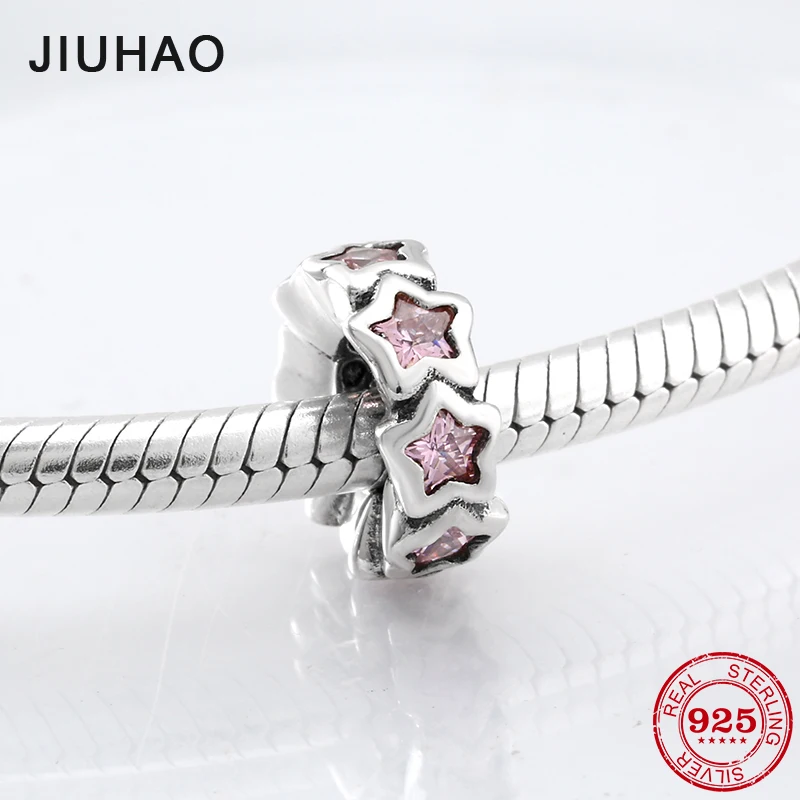 Модный очаровательный розовый браслет Pandora из стерлингового серебра 925 пробы с пятиконечной звездой, с интервалом, подходит для изготовления ювелирных изделий