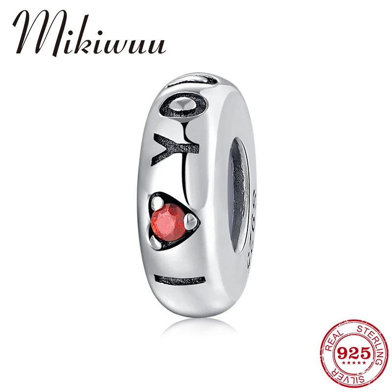 925 пробы серебряная буква I LOVE YOU Красный CZ спейсеры, Стопперы аксессуары из бисера Ювелирных изделий fit оригинальные Подвески Пандора Брасле...