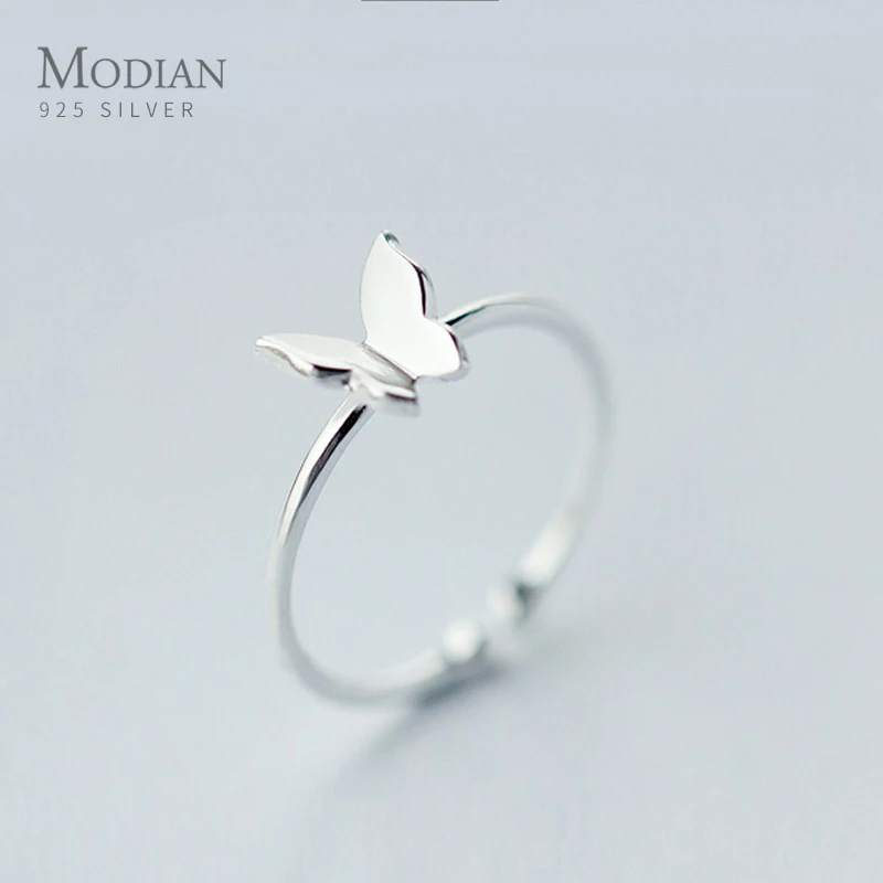 Modian модное простое кольцо с изображением насекомых для женщин Настоящее серебро 925 пробы глянцевое изящное регулируемое кольцо с бабочкой на палец изящное ювелирное изделие