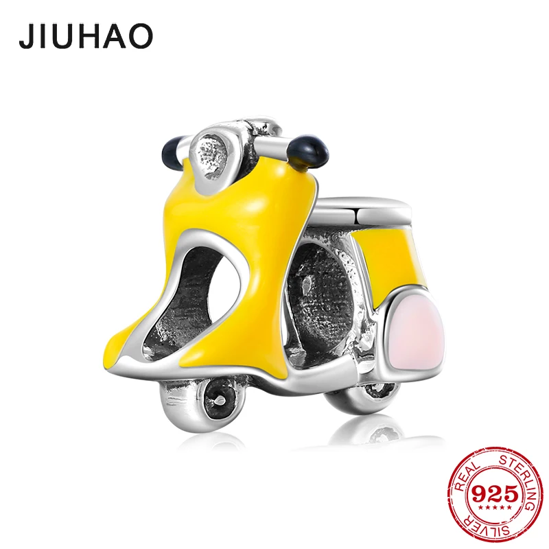 Хит, серебро 925 пробы, милые женские мотоциклетные желтые подвески, бусины, подходят к оригинальному браслету Pandora, браслеты, DIY ювелирные изделия
