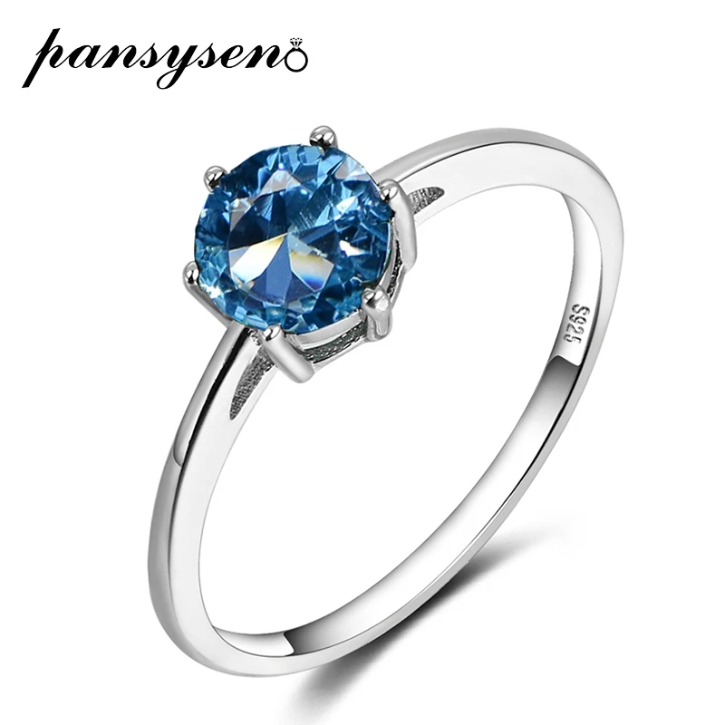 PANSYSEN Высокое качество 100% Стерлинговое Серебро Аквамариновый драгоценный камень кольца для женщин ювелирные украшения вечерние кольца Размер 4-12 оптовая продажа