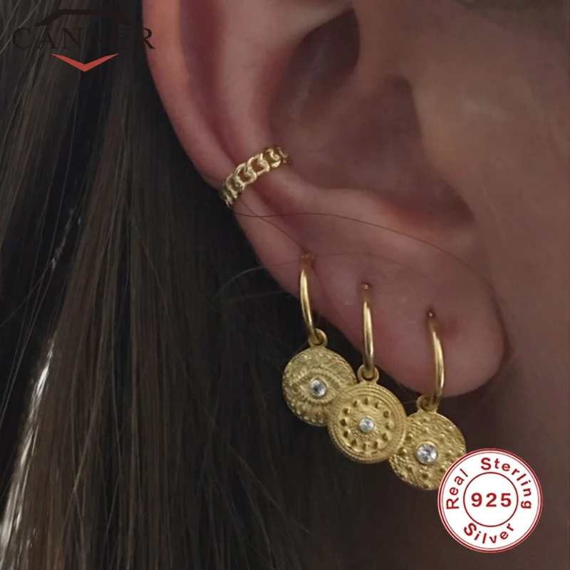 CANNER винтажные 925 пробы серебряные серьги-кольца с бриллиантами и дьявольским глазом круглые серьги с фианитами ювелирные изделия brincos