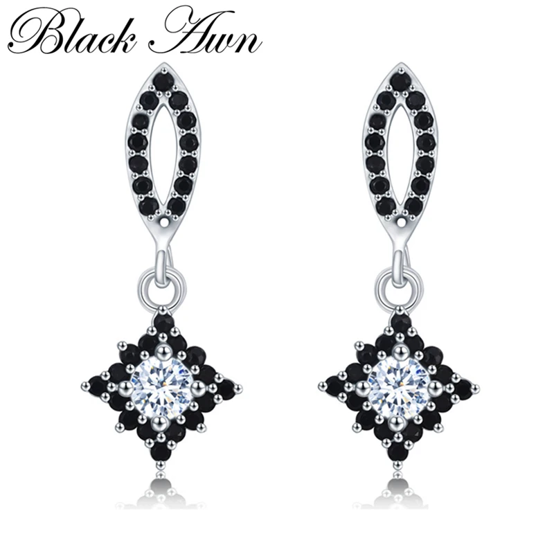 [Черный AWN] чистого серебра 925 Свадебные украшения Висячие серьги для женщин букле d'oreille T209