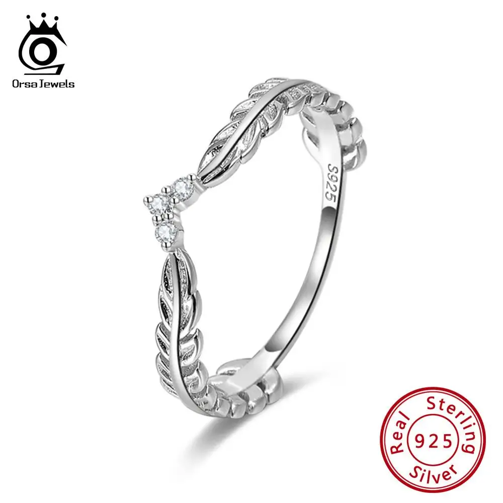ORSA JEWELS женские кольца из серебра и натуральной 925 пробы в форме оливкового венка, идеальное полированное женское романтическое кольцо, ювелирное изделие SR121