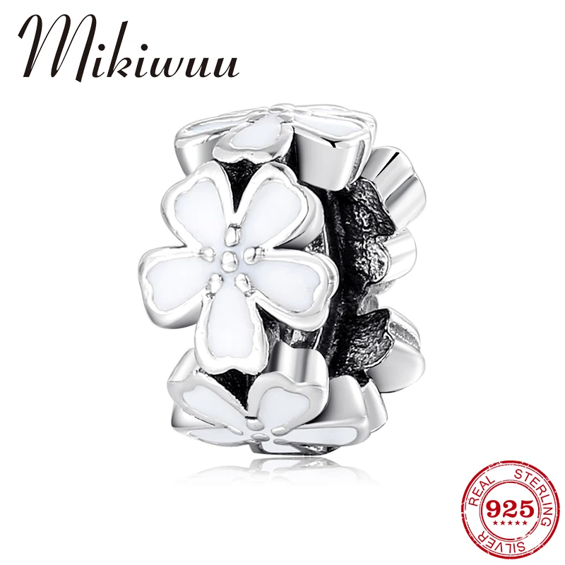 Новый 925 пробы серебро цветок из белой эмали шарики прокладки ювелирных изделий Fit оригинальный браслет подвес Пандора