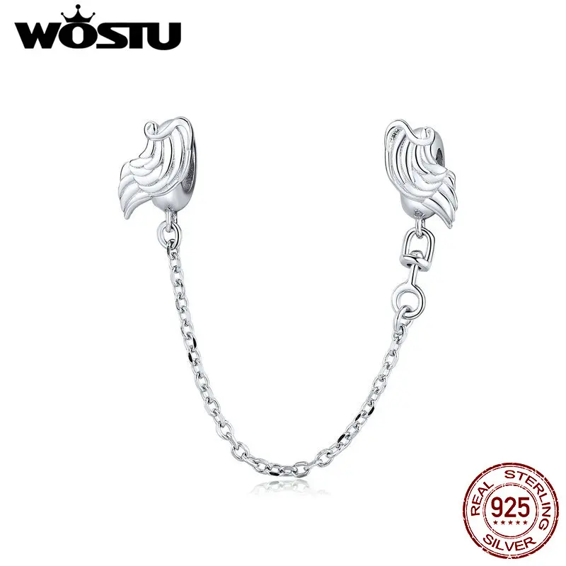 WOSTU серебряная цепь безопасности 925 пробы серебро в форме крыльев Ангела цепь-стоппер подвески для браслетов и браслетов ювелирные изделия CTC241
