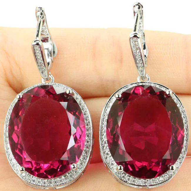 Делюкс 17,5g большой овал драгоценного камня 22x18 мм розовый турмалин, белый цирконовые серебряные серьги 40x20 мм
