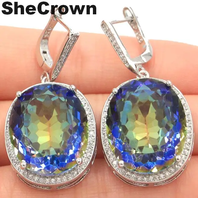 SheCrown большой тяжелый 19,1 г драгоценный камень Лондонский голубой топаз Белый CZ женские серебряные серьги 47x18 мм