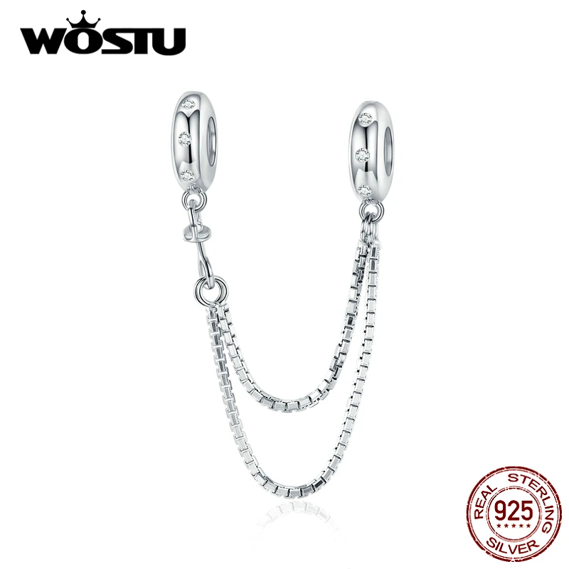 WOSTU 100% 925 пробы серебро кремния безопасносные браслеты с подвесками, подходят к оригинальному браслету кулон цирконами серебряные Простые Ювелирные изделия CQC1419