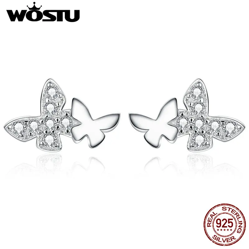 WOSTU подлинные 925 пробы серебряные серьги-гвоздики с бабочкой 2019 новый дизайн распродажа CZ серьги для женщин ювелирные изделия подарок CTE236