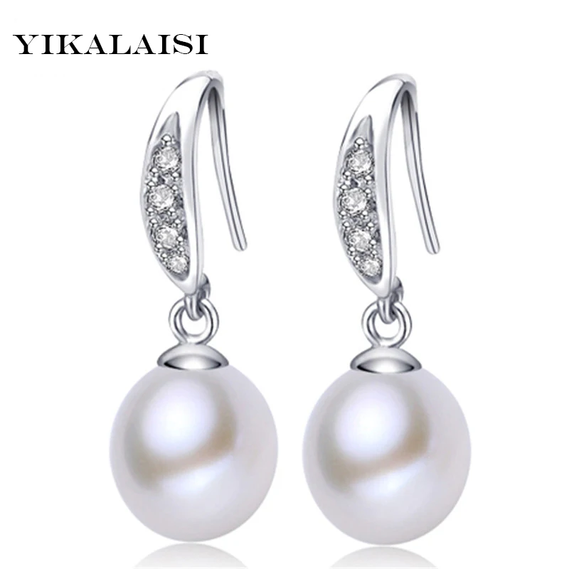 YIKALAISI 2017 ювелирные изделия из жемчуга серьги жемчуг для Женский Капля воды пресноводный жемчуг 925 пробы серебряные украшения серьги Свадебн...