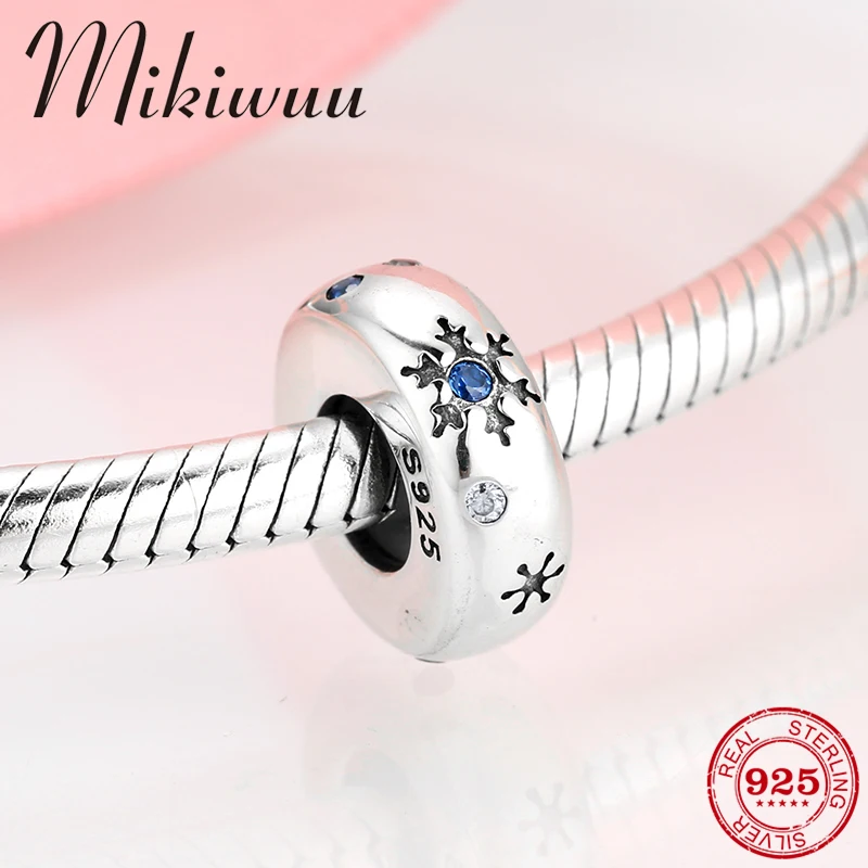 Рождество Новый 925 пробы серебро красивая снежинка синий CZ фиксаторы раздельные бусины, Установка оригинальный Pandora браслет ювелирных изде...