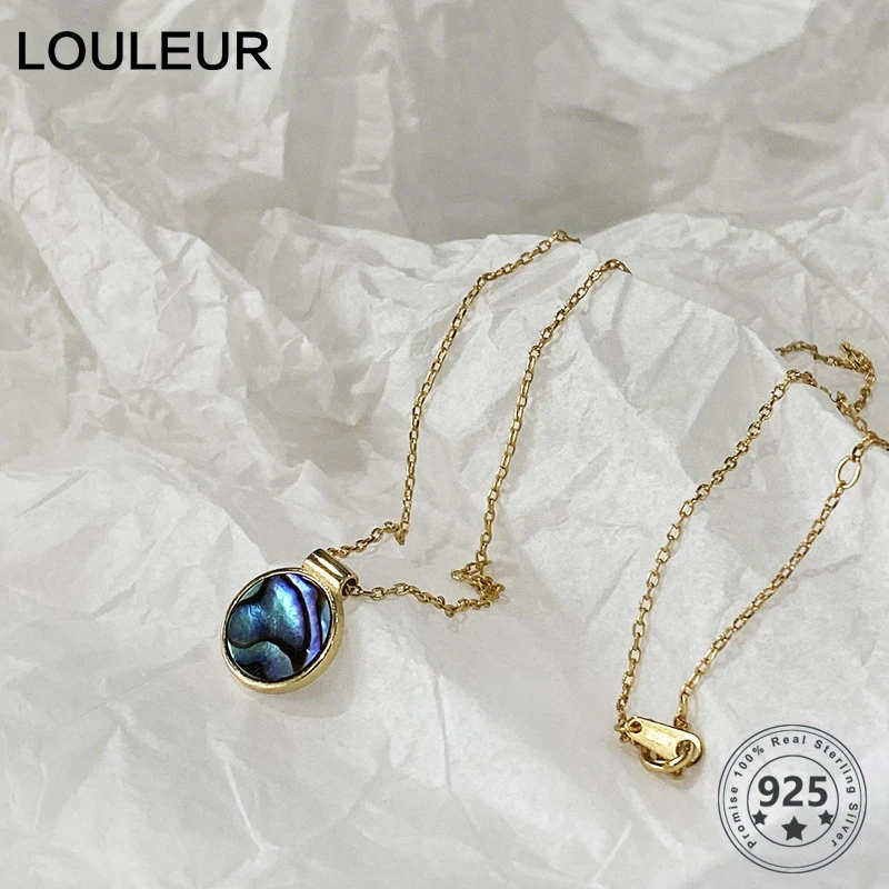 Louleur Стерлинговое Серебро 925 пробы, ожерелье в виде ракушки абалона, Элегантное синее круглое маленькое ожерелье с подвеской для женщин, 925 ш...