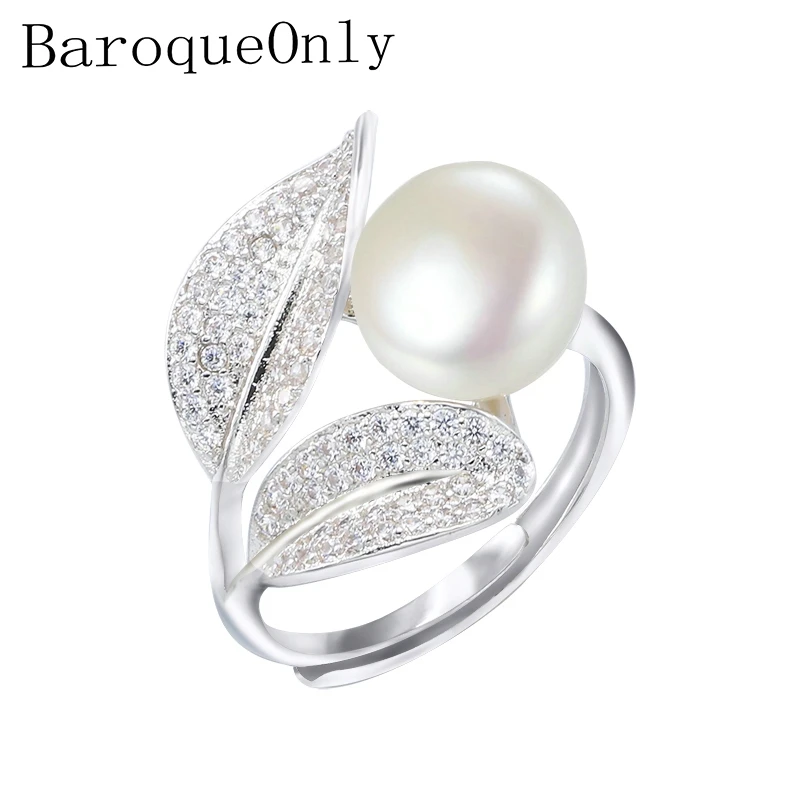BaroqueOnly Романтические и блестящие кольцо в форме листика 9-10 мм белый розовый синий пресноводный жемчуг лучший рождественский подарок для же...