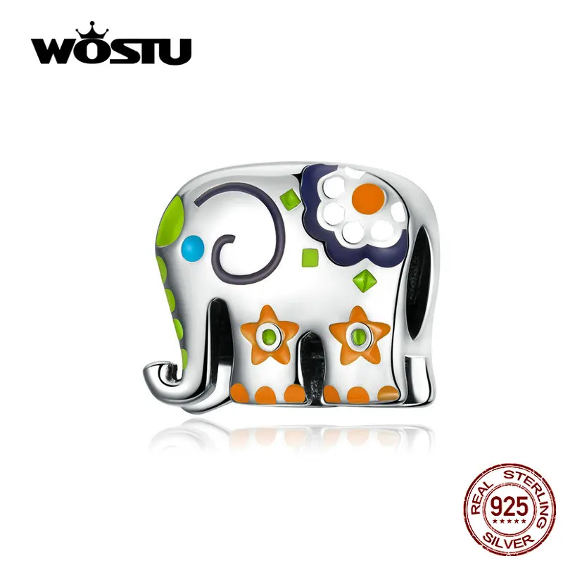 WOSTU красочные Счастливый Слон бусины из натуральной 925 пробы Серебряные Подвески подходят оригинальный браслет кулон ювелирные изделия подарок CTC095