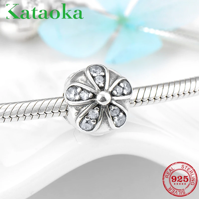Настоящее серебро 925 пробы ромашки цветок Кристалл CZ клипсы Замок бусины подходят оригинальный Европейский Шарм браслет модное ювелирное изделие