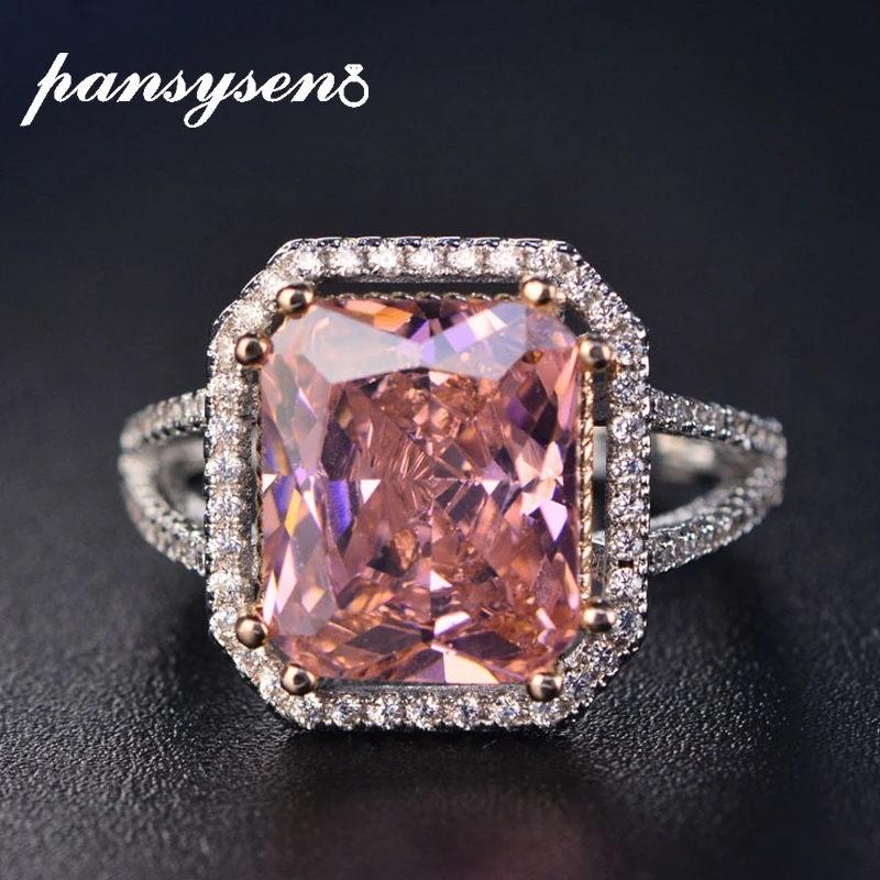 Женское кольцо с розовым шпинелем PANSYSEN, 100% цельное ювелирное изделие из серебра 925 пробы, 10x12 мм, ювелирные украшения для свадьбы, помолвки