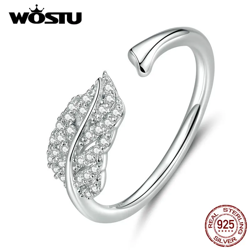 WOSTU Настоящее 925 пробы Серебряное перо чистое циркониевое кольцо для женщин обручальное регулируемое кольца из серебра 925 пробы, ювелирные изделия CQR614