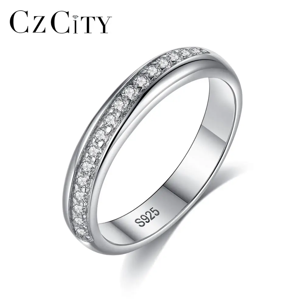 CZCITY фирменный дизайн чистое серебро 925 пробы женское кольцо "Любовь навеки" для женщин невесты простой перстень обручальные ювелирные издел...