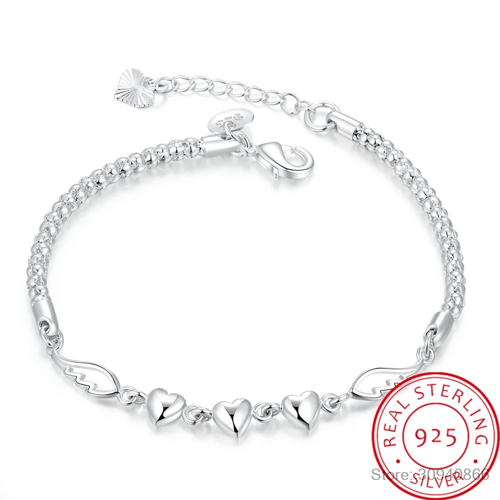 925 пробы Серебряный двойной Крылья Ангела сердце Шарм Браслеты для женские модные Кристаллы Стерлинговое Серебро-украшение браслет Feminina
