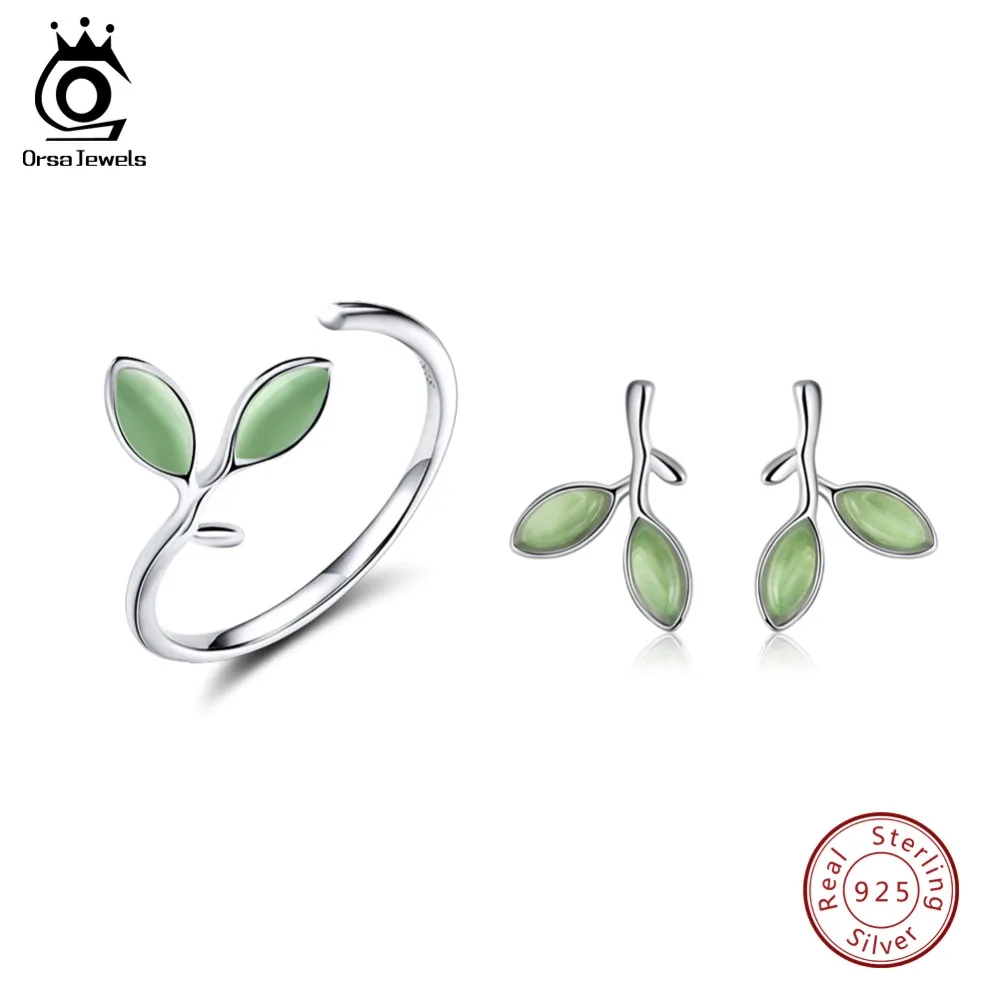 ORSA JEWELS женские серебряные Ювелирные наборы из натуральной 925 пробы с узором в виде листьев и камнями кошачий глаз вечерние кольца и серьги SS21-5