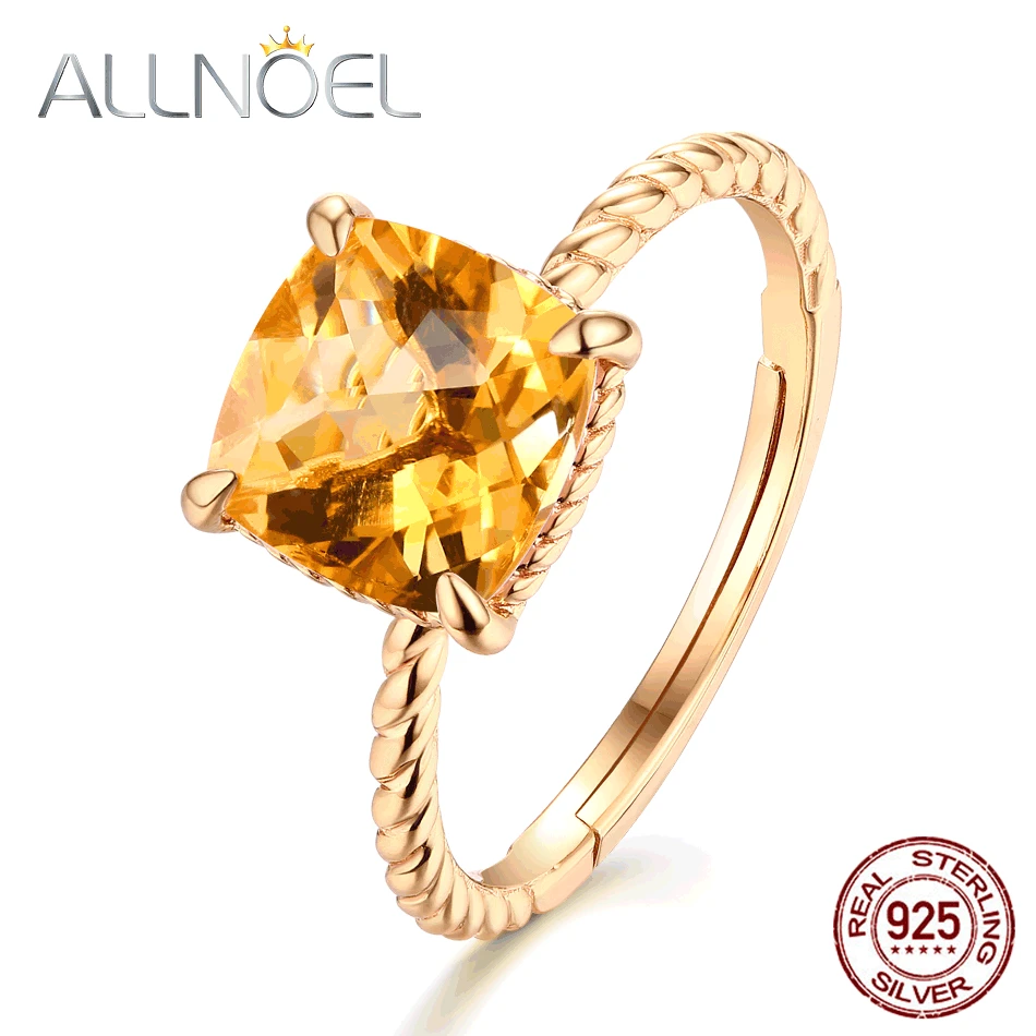 ALLNOEL обручальное кольцо из стерлингового серебра 925 пробы для женщин 100% натуральный розовый кварц/Топаз/цитрин/гранат 8*8 мм Свадебные ювелир...