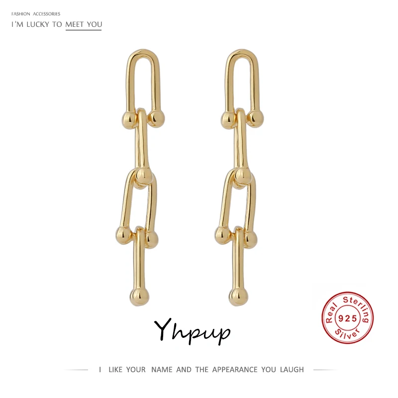 Женские Висячие серьги Yhpup, 100% Стерлинговое Серебро 925 пробы, модные золотые/серебряные металлические серьги, ювелирное изделие, ювелирное изделие, 925