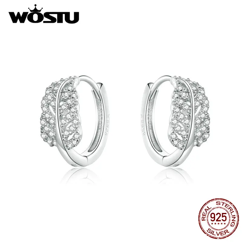 WOSTU, новая мода, 925 пробы, серебро, перо, висячие серьги для женщин, свадебные циркониевые серьги, свисающие серьги, ювелирное изделие, FIE772