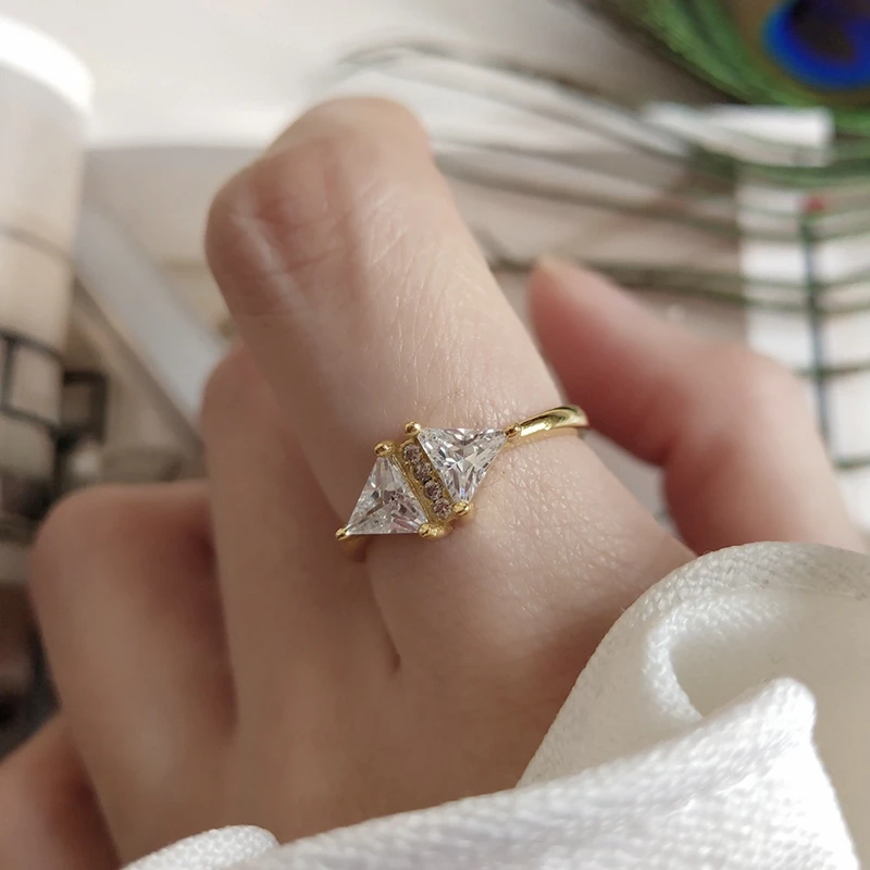 LouLeur двойной треугольный Циркон золотые кольца 925 серебро шикарный дизайн, элегантный текстуры открыть женские кольца романтические драгоц...
