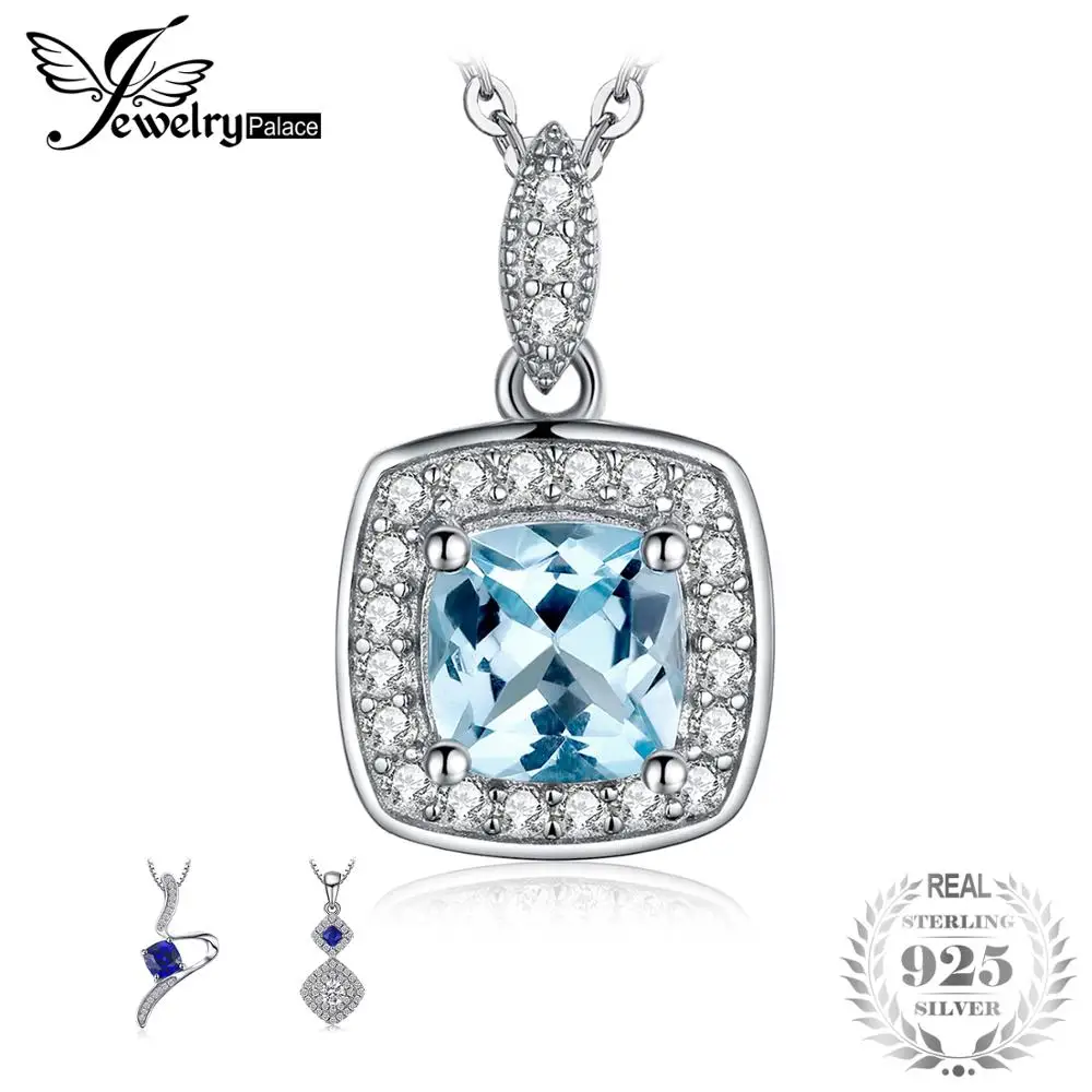 JewelryPalace 1.2ct Подушка подлинный синий топаз фианит огранки «маркиза» кулон 925 пробы серебро цепь не входит в комплект