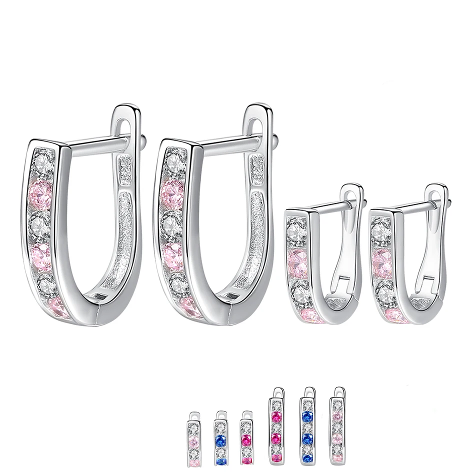 Женские серьги-кольца BELAWANG, розовые серьги из стерлингового серебра 925 пробы с прозрачными кристаллами, вечерние серьги для девочек, 2019