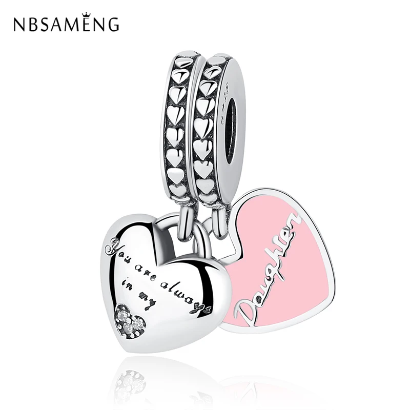 Оригинальные подвески в виде сердечек для мамы и дочки, мягкие розовые эмалированные подвески, подходят для браслетов Pandora, ювелирных изделий своими руками