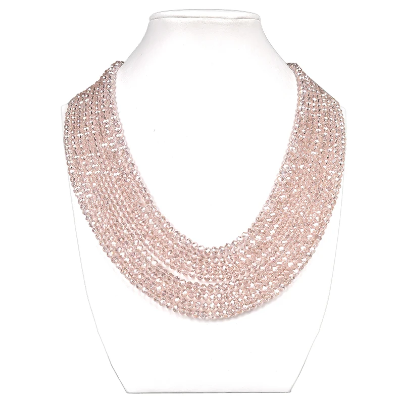 Tinge розовый многослойный круглый жемчуг и прозрачное стекло кристалл ожерелье с камнем, может быть праздничный подарок и Рождественский по...