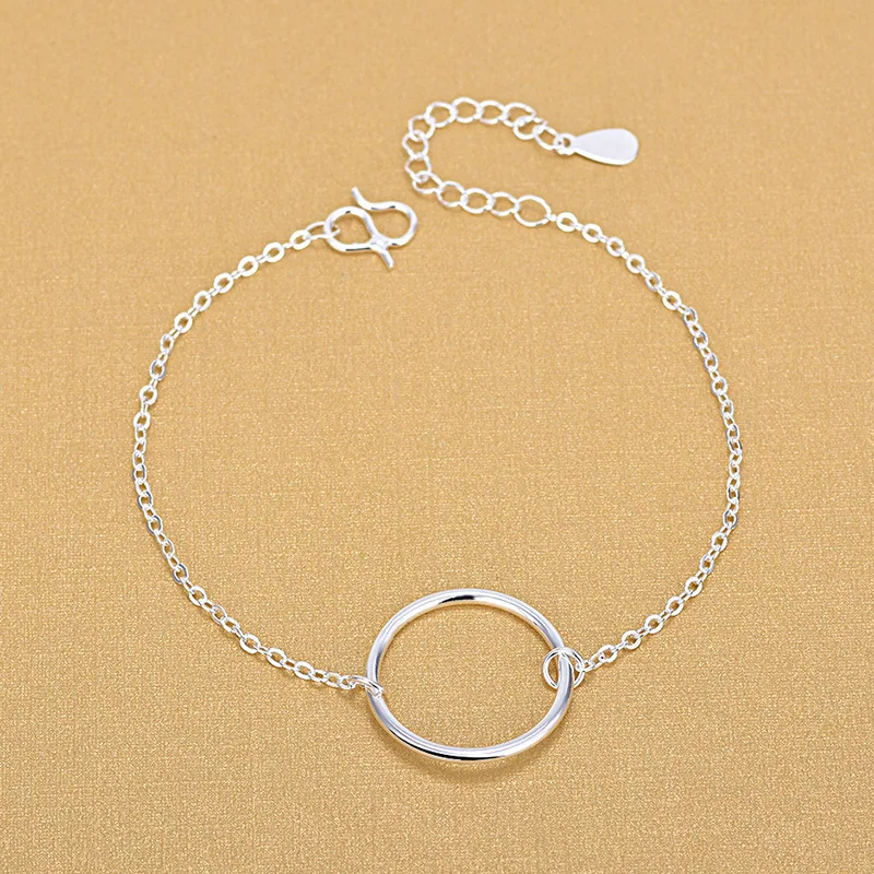 925 пробы Серебряный простой геометрический круг кольцо браслет минималистичный студенческий личность дикие ювелирные изделия для женщин